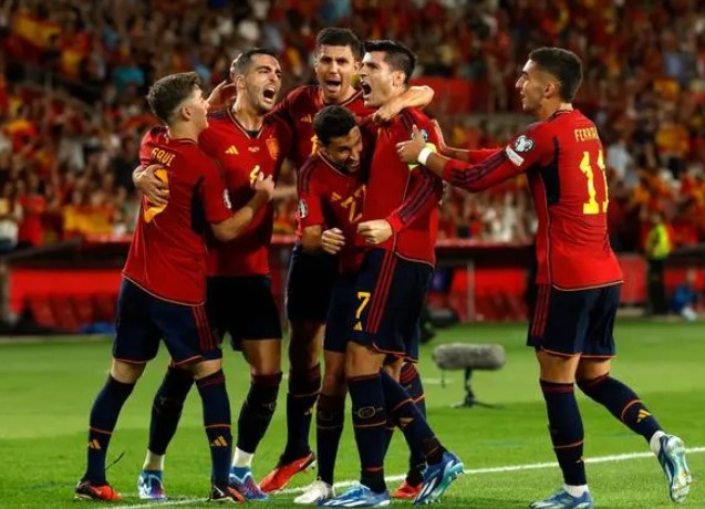 江城足球网讯 北京时间10月13日凌晨2:45,欧预赛A组第7轮,西班牙坐镇主场迎战苏格兰。上半场梅里诺中柱,莫拉塔破门但越位在先被吹,罗伯逊伤退,西班牙暂时0-0苏格兰;下半场麦克托米奈任意球破门,但VAR介入,苏格兰球员亨得利越位位置干扰门将,进球无效,随后莫拉塔头球建功,桑塞特再下一城,西班牙2-0击败苏格兰,在少赛一场的情况下积分来到12分,还落后苏格兰3分。