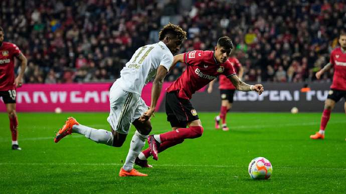 江城足球网讯 北京时间3月20日凌晨0:30,2022-23赛季德甲联赛第25轮,拜仁客战勒沃库森。上半场基米希破门,格雷茨卡助攻;下半场帕瓦尔和于帕梅卡诺先后铲倒阿德利送点,帕拉西奥斯点射双响,最终拜仁1-2被勒沃库森逆转,未能超过本轮获胜的多特蒙德,排名次席。
