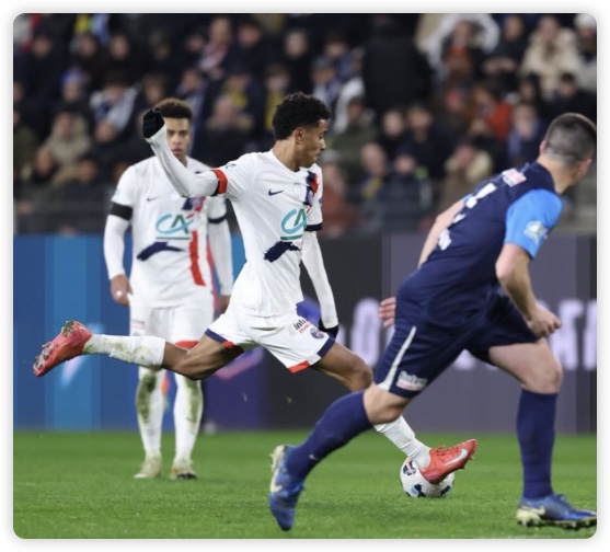 江城足球网讯 北京时间2月27日凌晨4:10,法国杯1/4决赛,巴黎圣日耳曼作客弗雷德-奥伯特体育场对阵布里欧齐。上半场,杜埃射门中框,若奥-内维斯破门为巴黎首开纪录,马尤卢助攻贡萨洛-拉莫斯破门扩大比分优势!半场战罢,巴黎圣日耳曼暂-布里欧齐;下半场,克瓦拉茨赫利亚造点,贡萨洛-拉莫斯主罚命中,之后贡萨洛-拉莫斯再入一球完成帽子戏法,杜埃、马尤卢、登贝莱各入一球。全场比赛结束,巴黎圣日耳曼7-0布里欧齐!