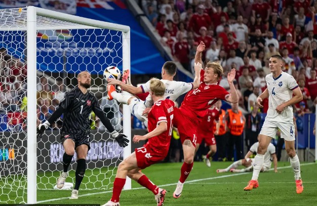 江城足球网讯 北京时间6月26日凌晨3时,欧洲杯小组赛C组第3轮,丹麦对阵塞尔维亚。上半场,温德打进一球,但是此前队友的传球运行过程中先出了底线,进球无效。丹麦半场0-0战平塞尔维亚。下半场,米特洛维奇制造了丹麦队一个乌龙球,但是被判越位在先,进球无效。最终丹麦0-0战平塞尔维亚。该组小组赛全部结束,丹麦3分排名第二出线,将对阵德国;塞尔维亚2分小组垫底出局。