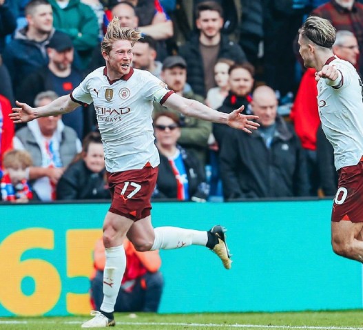 曼城4-2水晶宫先赛暂升第二 格拉利什独造4球德布劳内2射1传