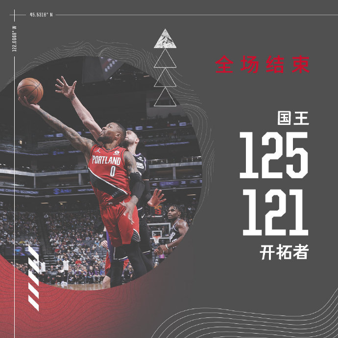 开拓者 121-125 国王 NBA常规赛国王迎来开拓者的挑战,开拓者近来状态不错拿到4连胜,反观国王则是遭到4连败。开场后虽然国王首先打出攻势,但努尔基奇内线爆发帮助开拓者反超比分。第二节开拓者双枪和国王的年轻双子星连续对飙得分,两队多次打成平手,考文顿朝裁判扔面具被驱逐出场,凭借鲍威尔的压哨三分,上半场开拓者71-69领先。下半场回来两队手感都有所下降,但场上局面一直处于胶着,两队多次交替领先,最后一节国王取得领先并始终将优势保持到最后,最终国王125-121力克开拓者。
