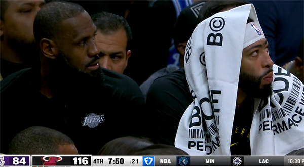江城足球网讯北京时间12月5日,NBA常规赛湖人客场93-134惨败热火41分,浓眉出战31分钟,14投3中拿到8分7篮板5助攻3犯规,正负值-29,得分创赛季新低,坐在替补席满脸绝望;自从豪言夺冠后连续两场惨败且两战狂输70分。
