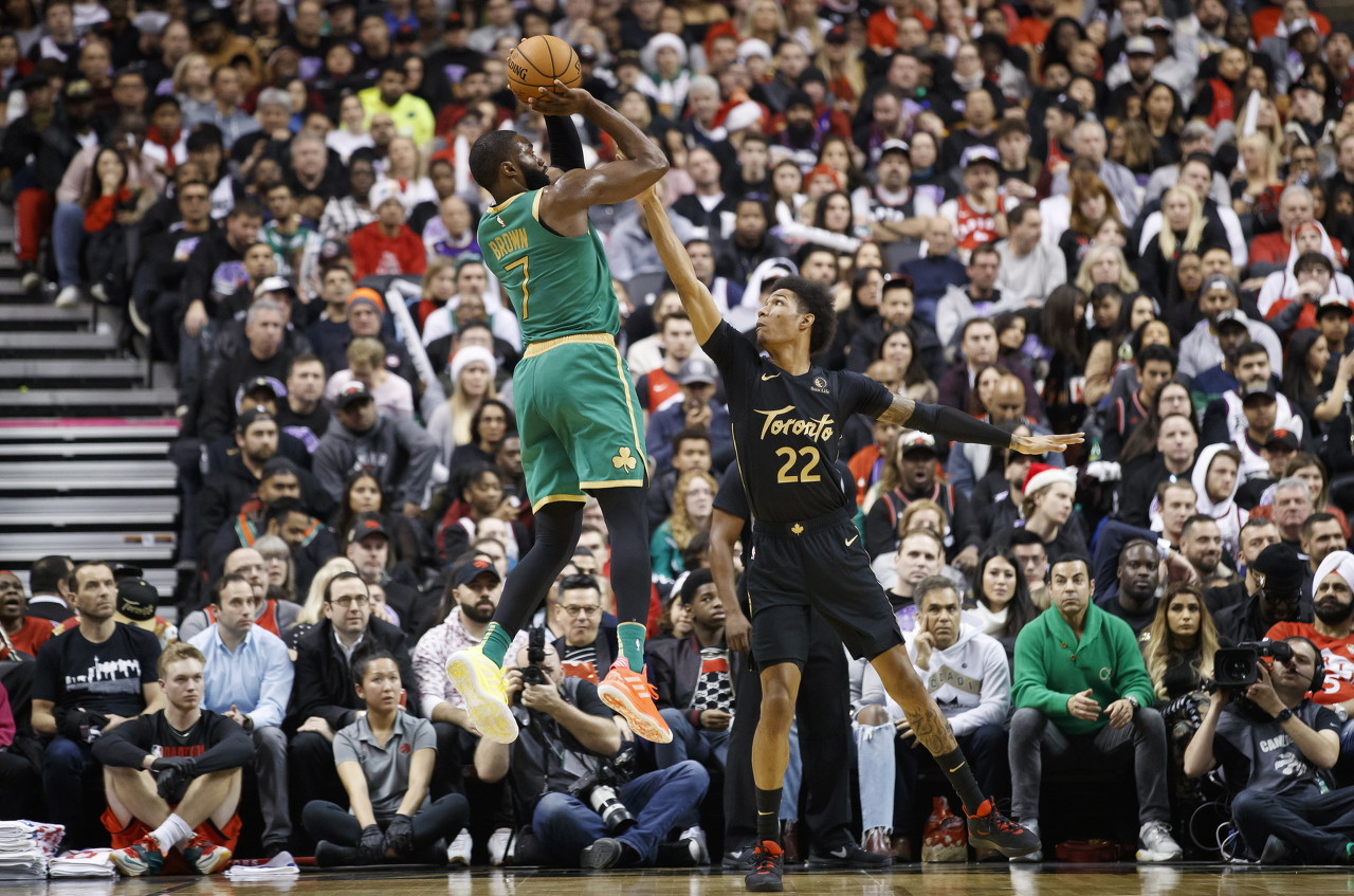 本赛季,塔图姆养伤,霍福德、霍勒迪、波尔津吉斯离队,马祖拉终于不再用“数学篮球”封印布朗的中投能力。凯尔特人进球能力下降,需要布朗去填补空缺,无所谓他用什么方式。布朗说道:“本赛季我们得把握住任何能出手的机会,对吧?哪怕是中投。而过去这种投篮更多是被劝阻的。”