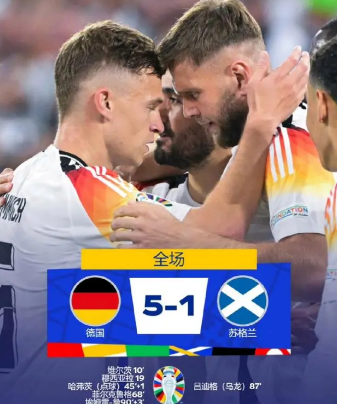 江城足球网讯 6月15日,万众瞩目的欧洲杯拉开大幕,德国队迎来了和苏格兰的对阵,在两者的实力上,东道主德国队肯定是占优的,可是让球迷没有想到的是这个占优的优势竟然如此的明显。