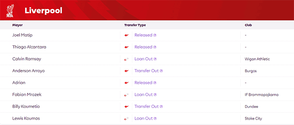 拉姆齐被外租至维冈竞技;安德森-阿罗约转会至西乙的布尔戈斯;莫罗泽克外租至瑞典超的布鲁马波卡纳;库梅蒂奥转会至邓迪;刘易斯-库马斯则外租至斯托克城。